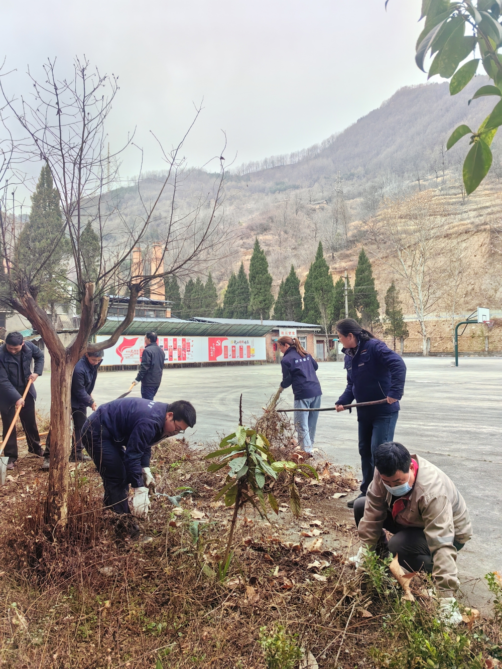 上午9時,在黨支部書記馬林波的動員下,志愿者們迅速集結(jié),手持鐵鍬、掃把、簸箕等工具,投入到緊張而有序的清掃活動中。他們分工明確,協(xié)作默契,對辦公樓前的綠化帶進(jìn)行了徹底整治,重新翻土,播種花種,并清理了宿舍樓前綠化里的枯草、煙頭、塑料袋等雜物,為礦區(qū)增添了一抹生機(jī)。盡管當(dāng)天大風(fēng)肆虐,但志愿者們的熱情絲毫未減,他們干勁十足,不放過任何一個衛(wèi)生死角,經(jīng)過數(shù)小時的辛勤勞動,礦區(qū)面貌煥然一新,整潔有序。