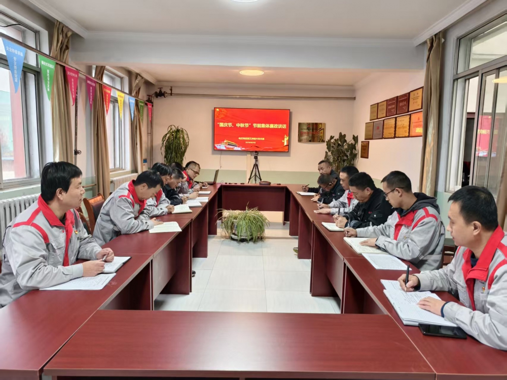 為進一步加強黨風廉政建設,營造風清氣正的節(jié)日氛圍,9月28日,內(nèi)蒙項目部組織開展中秋、國慶雙節(jié)前集體廉政談話會。會議由公司黨支部副書記、紀檢員張育波主持,公司黨支部副書記、經(jīng)理史小亮作總結(jié)講話,公司領導班子成員及各部室負責人參加會議。