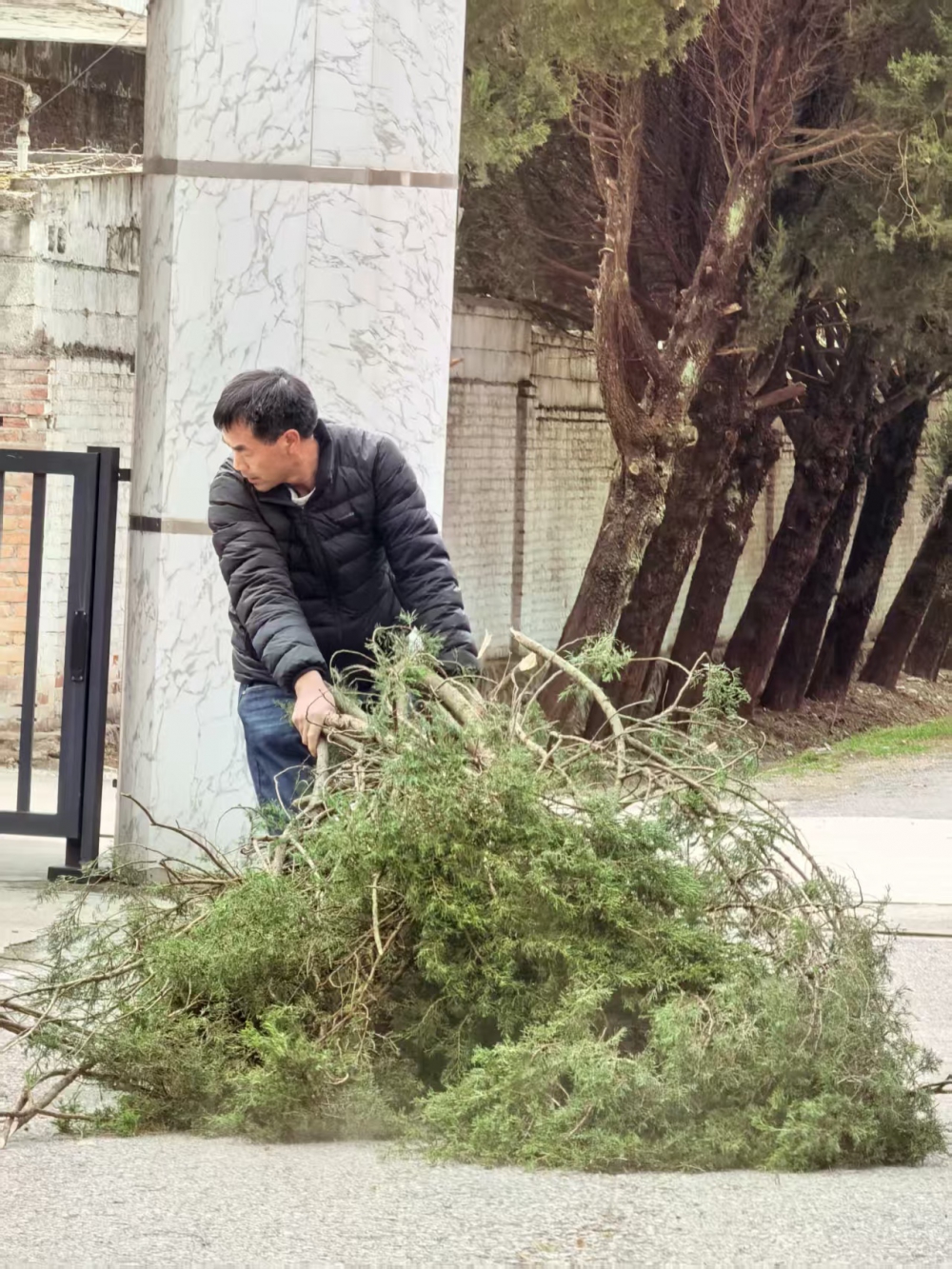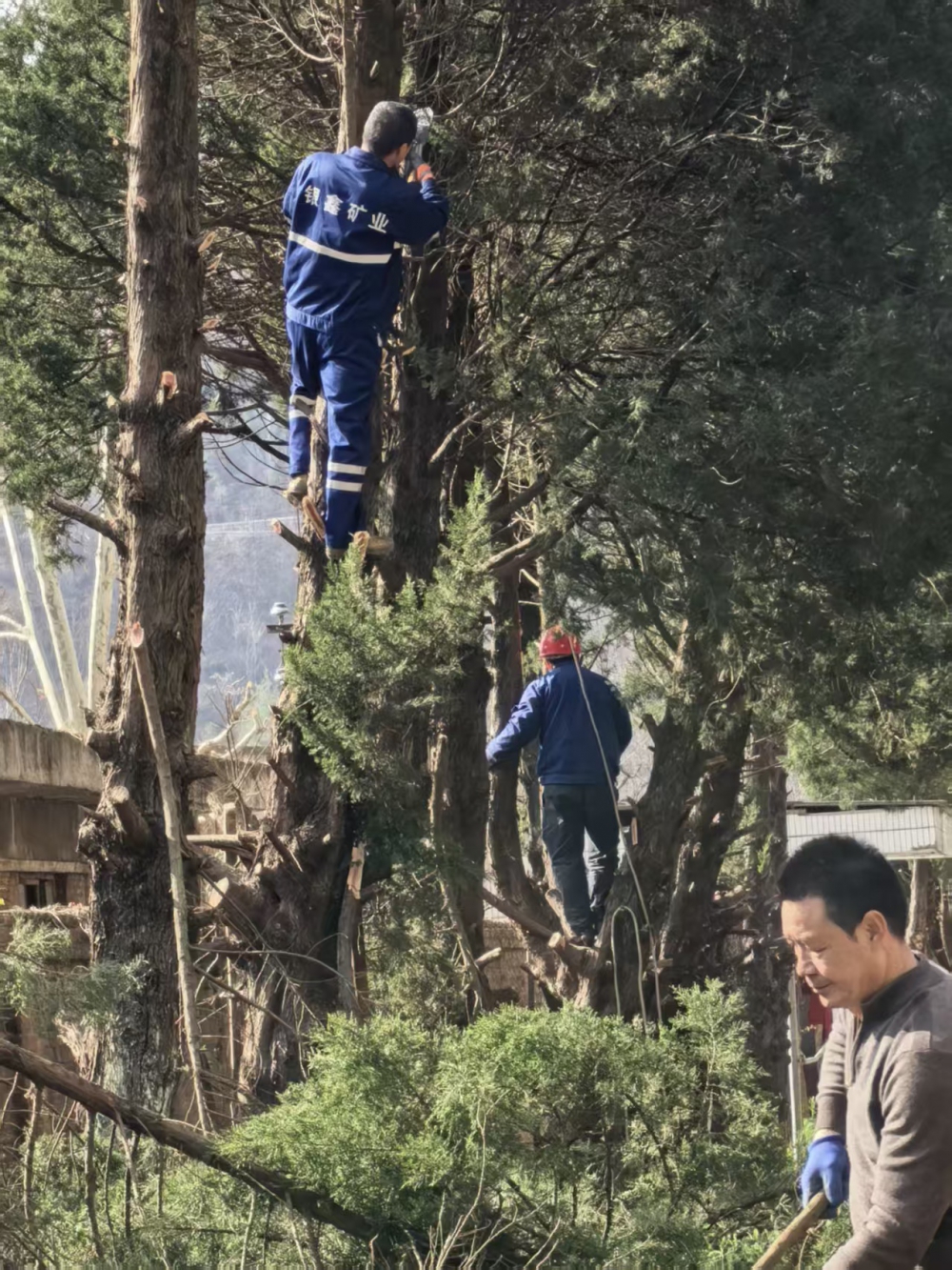 3月4日清晨,春寒料峭,金米礦區(qū)大門口卻是一派熱火朝天的勞動景象。為及時消除春季樹木生長帶來的安全隱患,金米礦區(qū)黨支部組織開展主題黨日活動,全體在崗干部職工齊上陣,對礦區(qū)大門兩側(cè)松柏及法國梧桐樹枝進行集中修剪清理。