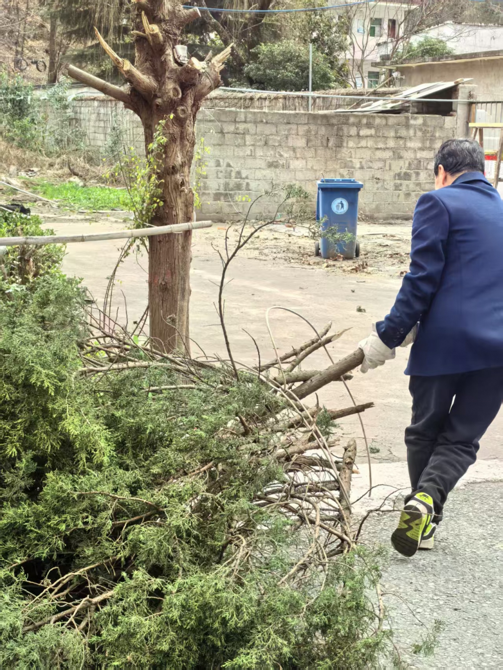 女職工們則積極投入后勤保障工作,有的為汗流浹背的同事送上熱水,有的清掃散落的枝葉,有的協(xié)助搬運枝條。大家心往一處想、勁往一處使,生動展現(xiàn)了團結(jié)協(xié)作、齊心共建的良好氛圍。